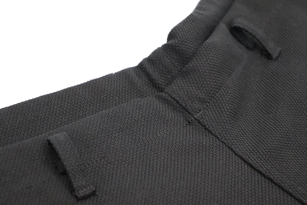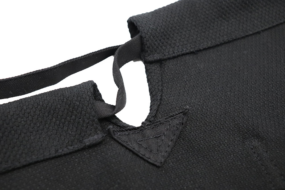 We have created a design that takes advantage of the shape of the pants of a judogi and can be used for everyday use. Just like a judogi, the method of wearing it is to pull and tie the waist strap that comes out from the side.