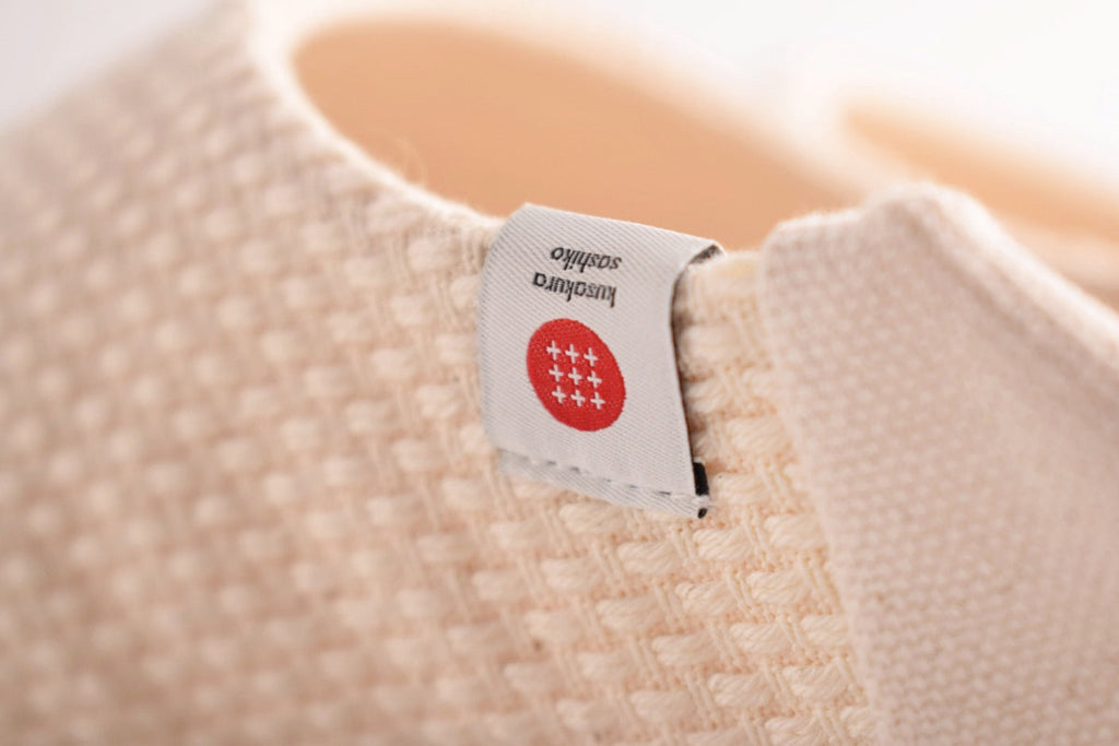 Kyusakura Sashiko Babouche. The fabric is equivalent to the one used for judo wear, making it strong and durable.