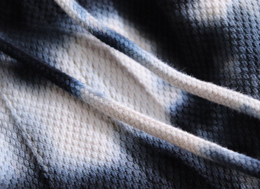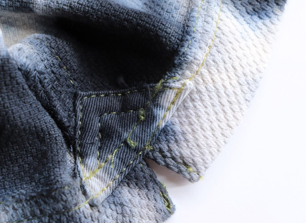 En raison des caractéristiques de Kusakura Sashiko (le tissu de tissage de points), veuillez noter que le tissu peut s'accrocher.